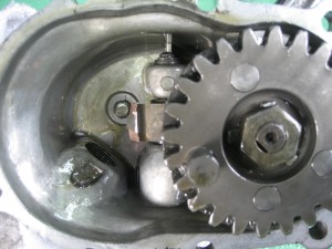 シリンダーヘッドの取り付け面、右側は清掃済み!